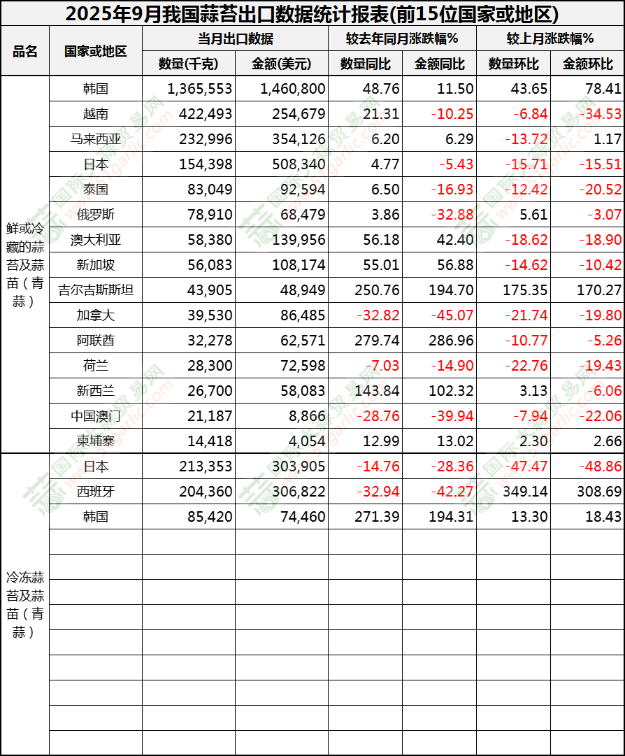 2025年9月蒜苔出口數(shù)據(jù)(按國家)