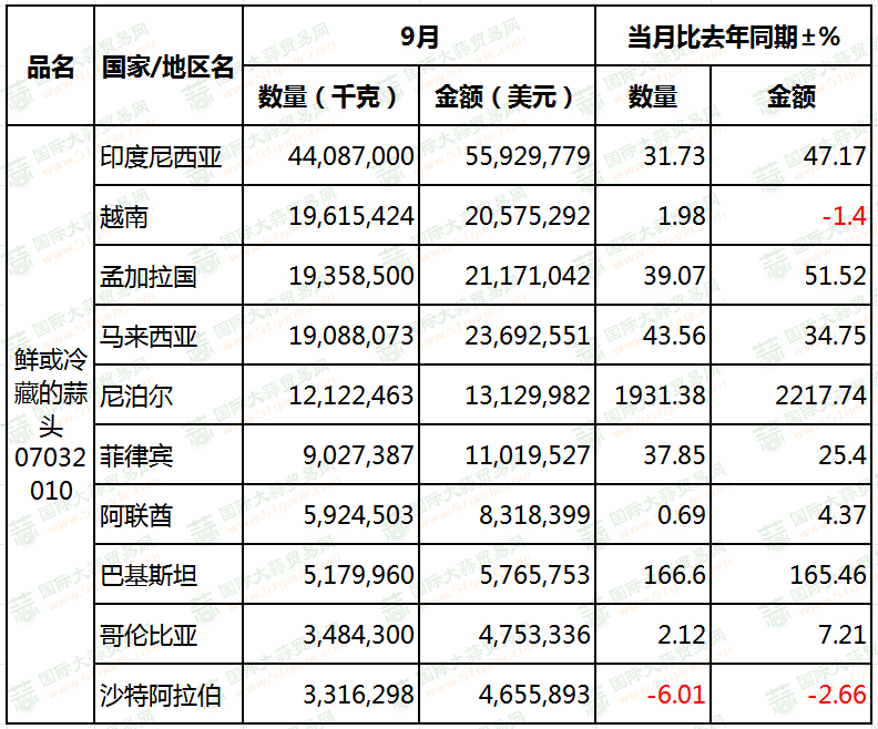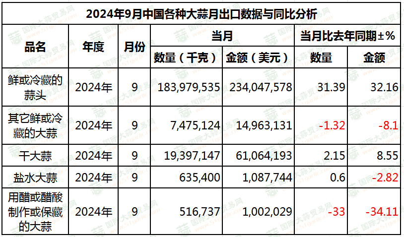 9月份大蒜出口量大放異彩