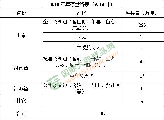 2019年冷庫(kù)大蒜庫(kù)存統(tǒng)計(jì)