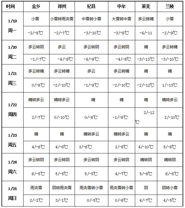 本周(1 月 19 日 - 25 日)金鄉(xiāng)、邳州、杞縣、中牟、萊蕪、蘭陵等大蒜主產(chǎn)區(qū)天氣呈現(xiàn)顯著的階段性波動:1 月 19 日(周一)率先迎來大范圍雨雪天氣,中牟出現(xiàn)大雪轉(zhuǎn)中雪,杞縣為中雪轉(zhuǎn)小雪,金鄉(xiāng)、蘭陵飄起小雪,邳州則是小雪轉(zhuǎn)雨夾雪,僅萊蕪以多云轉(zhuǎn)晴為主,當(dāng)日氣溫跌入嚴(yán)寒區(qū)間,最高溫僅 - 2~-4℃,最低溫普遍在 - 7~-11℃;1 月 20 日 - 23 日(周二至周五),天氣逐步轉(zhuǎn)好,多地由多云轉(zhuǎn)陰或轉(zhuǎn)晴,萊蕪、蘭陵維持晴好天氣,氣溫先抑后揚,20-21 日最高溫仍在 - 1~1℃徘徊,最低溫甚至跌至 - 13℃,22-23 日最高溫回升至 0~5℃,蘭陵最高達 5℃,光照條件明顯改善;1 月 24 日 - 25 日(周六至周日),產(chǎn)區(qū)再次迎來雨雪降溫,金鄉(xiāng)、邳州出現(xiàn)雨夾雪,杞縣、中牟為雨夾雪轉(zhuǎn)小雪,蘭陵由陰轉(zhuǎn)小雪,僅萊蕪為陰天,氣溫大幅回落,最高溫降至 2~4℃,最低溫在 - 1~-7℃區(qū)間波動。