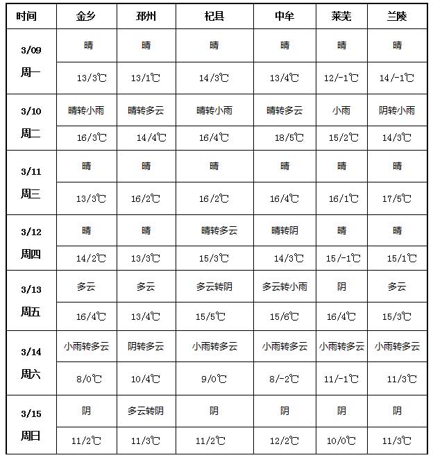 本周(3月9日至3月15日)金鄉(xiāng)、邳州、杞縣等大蒜主產區(qū)天氣多變,晴好天氣和降水天氣交替出現(xiàn)。降水集中在 3月10日、 14日,其中3月10日多為陣性降水,13 - 14 日降水范圍更廣且伴隨明顯降溫。周內產區(qū)氣溫波動顯著,前期(9- 11日)日間氣溫 12 - 17℃、夜間 -1-5℃,12-13日日間氣溫升至 13 - 16℃,14日起遭遇斷崖式降溫,日間氣溫驟降至8-11℃,部分產區(qū)夜間最低溫跌至-2℃。